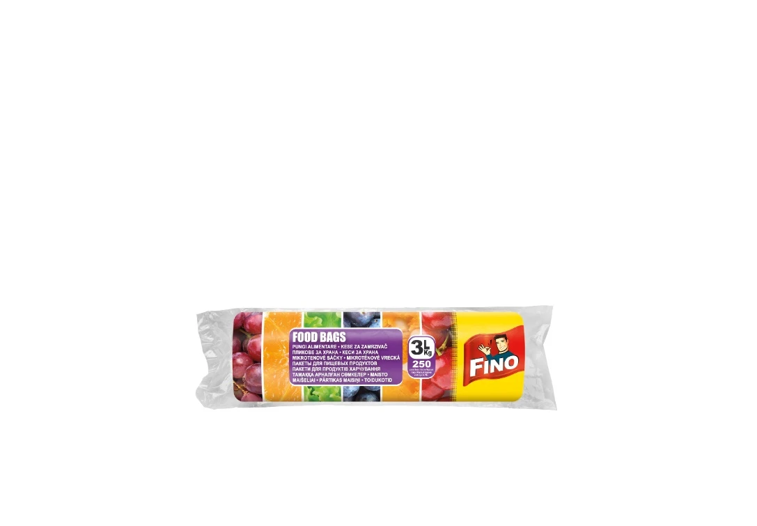 Pungi alimentare Fino 3l, in rola de 250 bucati, folosite la ambalarea si conservarea alimentelor, care mentin gustul, aroma si prospetimea.