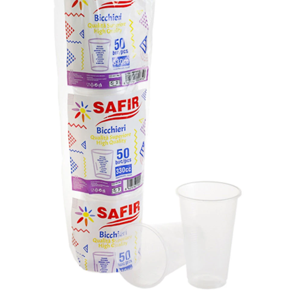 Pahar plastic de unica folosinta transparent Safir 330ml 50buc/set