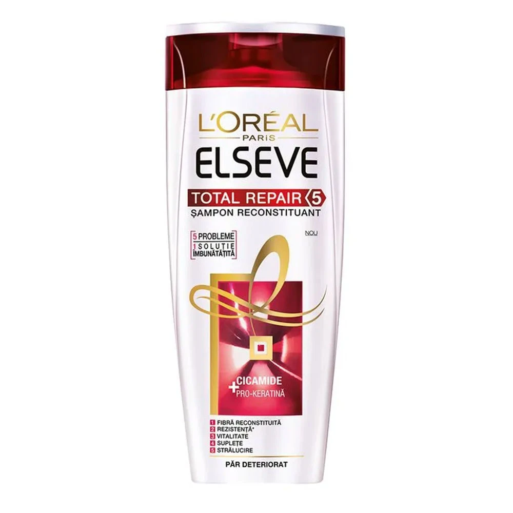 Loreal Elseve Sampon Total Repair 5 Filler Parul tau este format in principal din celule de keratina, care sunt protejate de ciment intercelular. Odata cu trecerea timpului si sub influenta factorilor externi nocivi, suprafata parului este mai intai distrusa, apoi structura acestuia. Parul devine mai delicat, slabeste, devine plat, aspru si plictisitor.