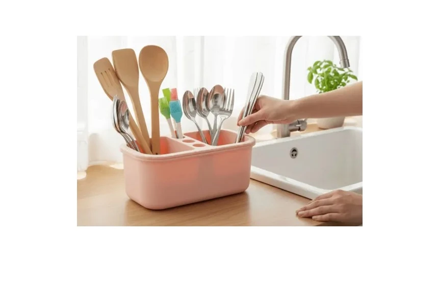 Suport practic pentru ustensile de bucătărie, ideal pentru organizarea lingurilor, spatulelor și altor instrumente. Stabil, ușor de accesat și de curățat, menține ordinea și eficiența spațiului de gătit.