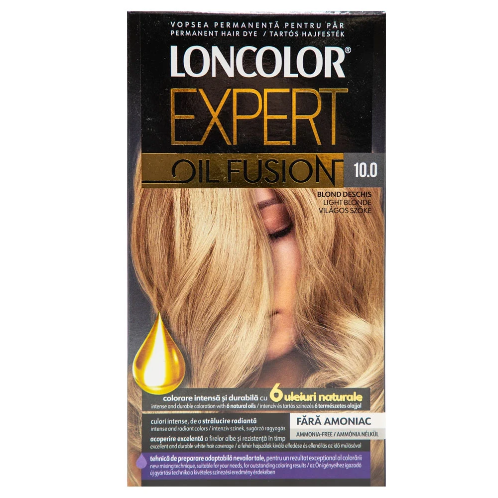 Vopsea De Par Loncolor Expert Oil Fusion Blond Deschis 10 Vopsea pentru un blond deschis, ce ofera o culoare stralucitoare si naturala. Formula sa contine uleiuri hranitoare ce protejeaza parul si ii confera o stralucire intensa.